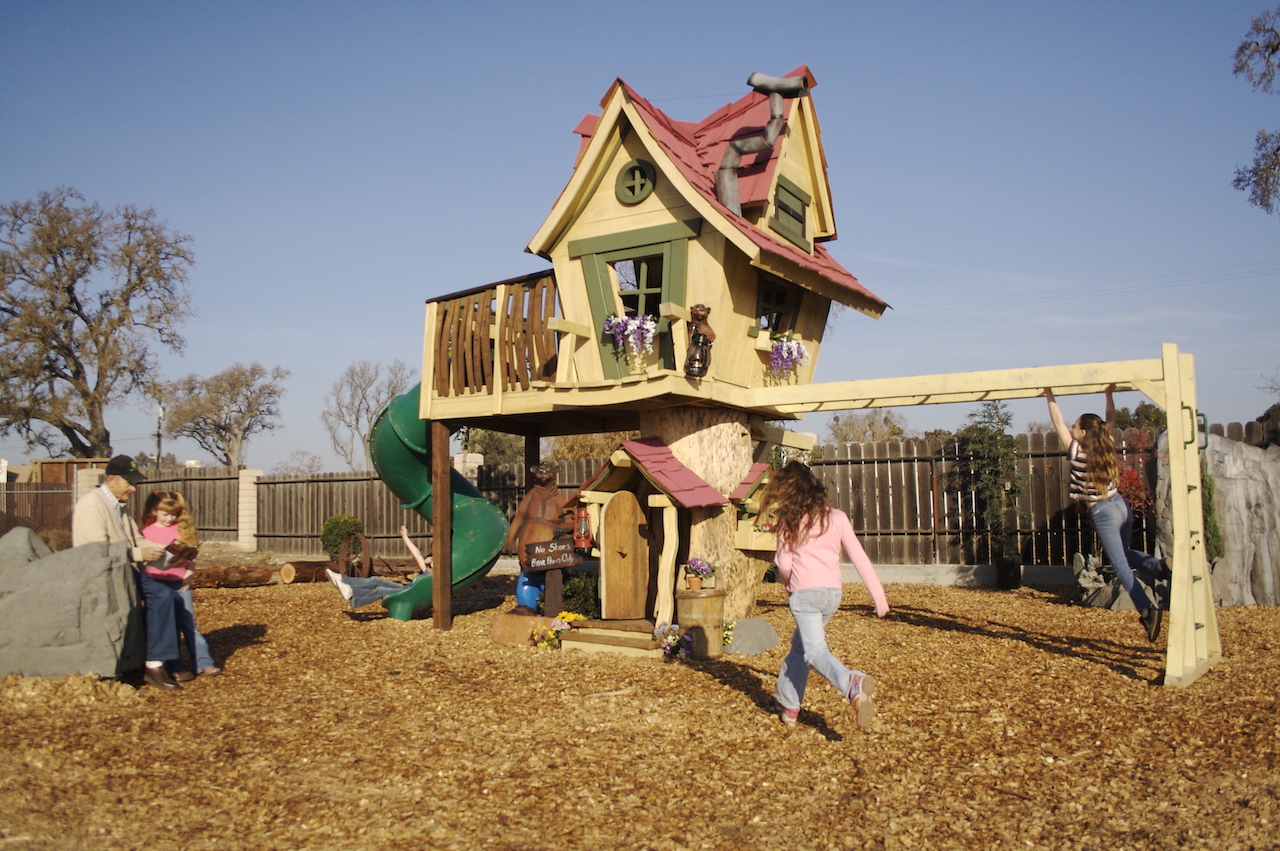 In addition to the spiral turbo slide, the Monkey Mansion also features monkey bars, a belt swing, and the always popular tire swing. It's the perfect backyard tree house for kids of all ages. Our deluxe model adds to the fun by incorporating an oversized log, oversized clubhouse, an upgraded oversized balcony, an extra belt swing on the swingset, and a staircase with landing. This play set really does have it all! Our tree houses are built with fun, durability, and safety in mind, guaranteeing years of imaginative play.